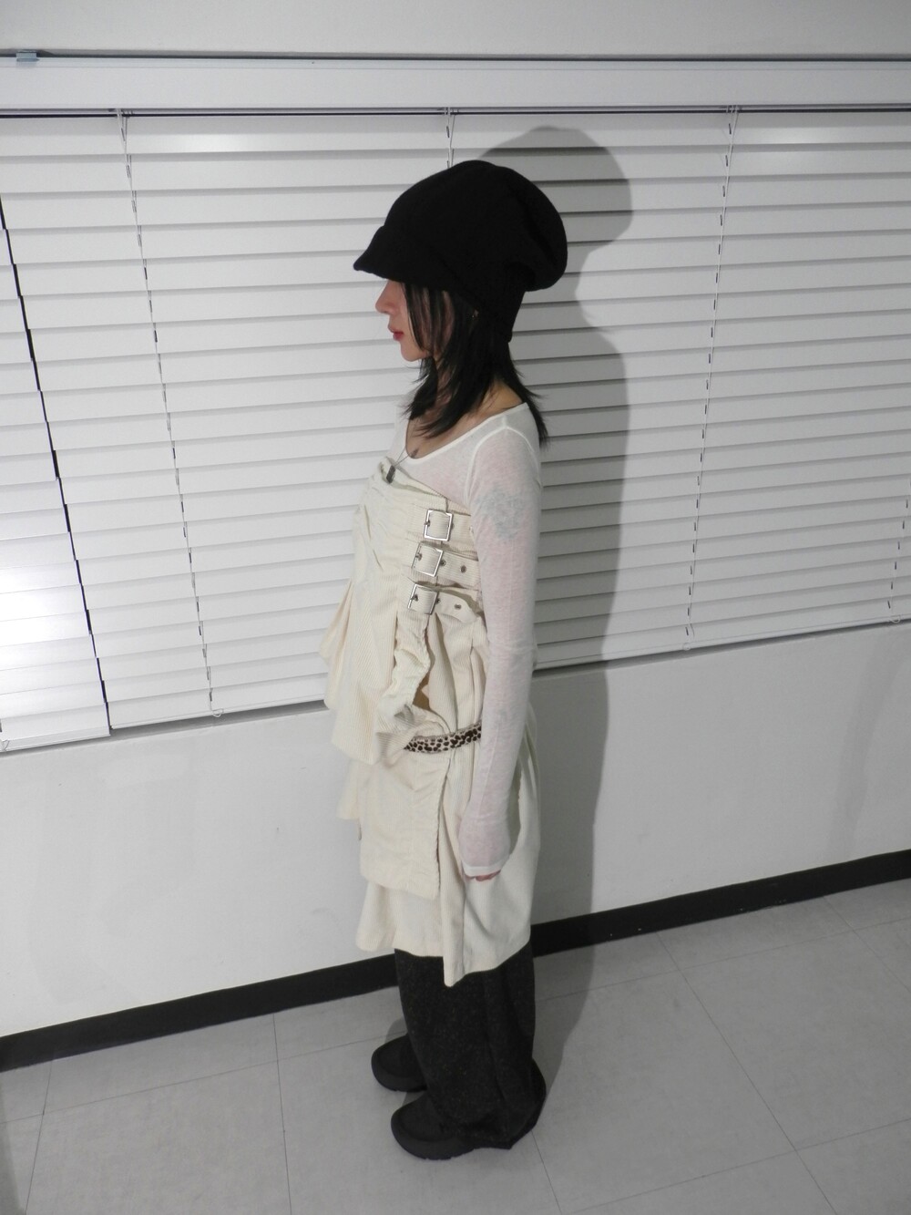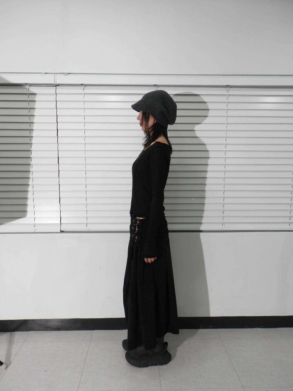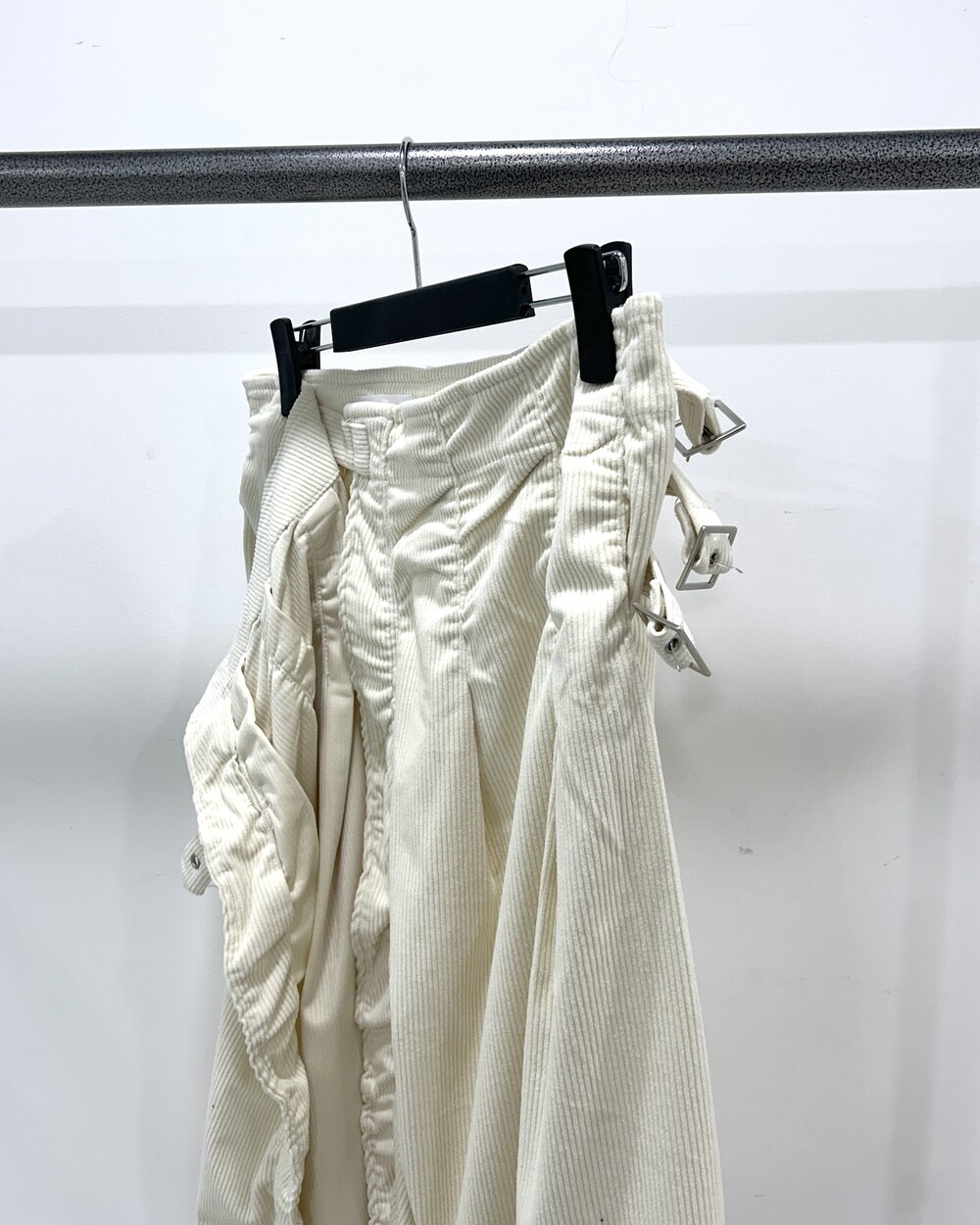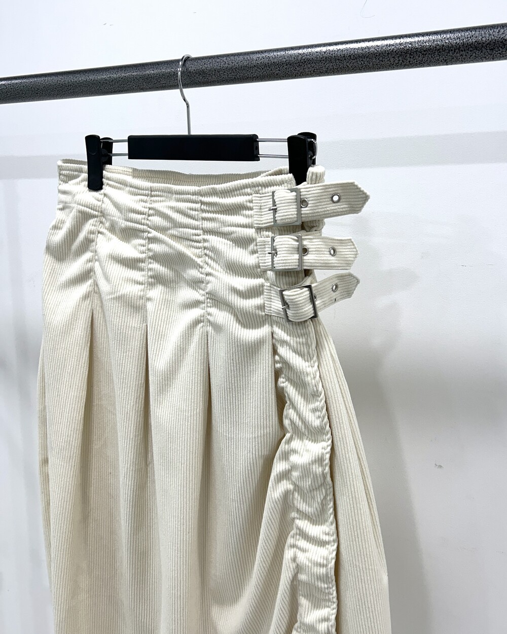 - 허리 옆면 3개의 벨트 디테일의 롱스커트.