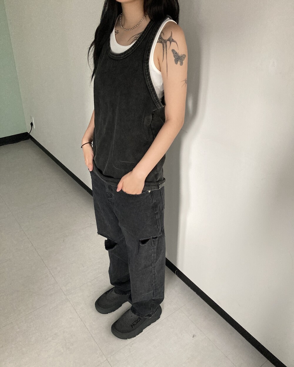 - 넓은 암홀라인으로 레이어드 착용에 좋습니다.