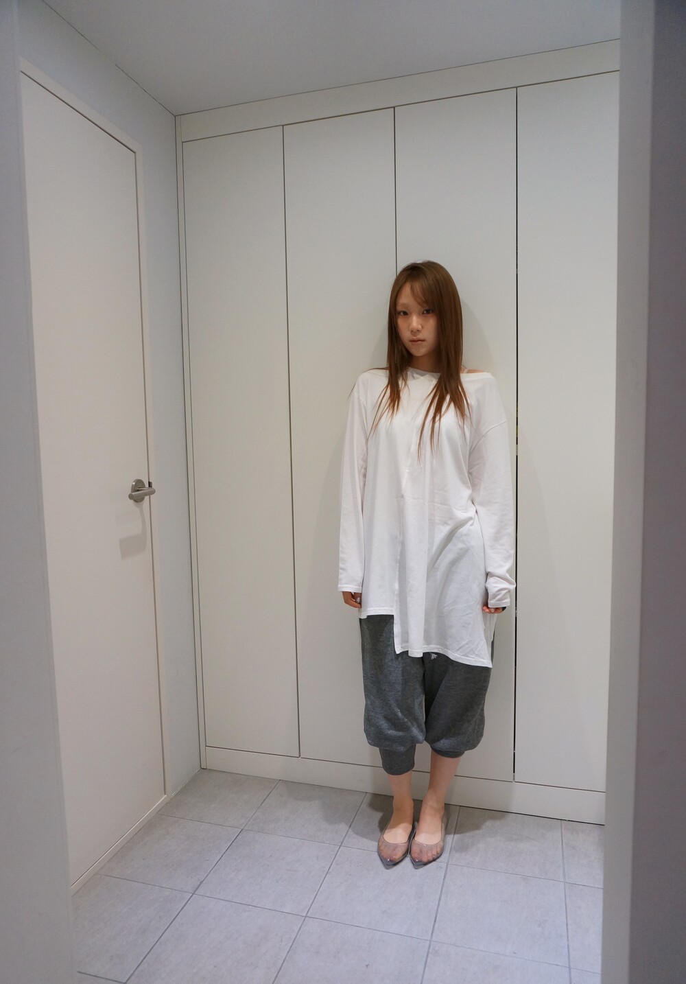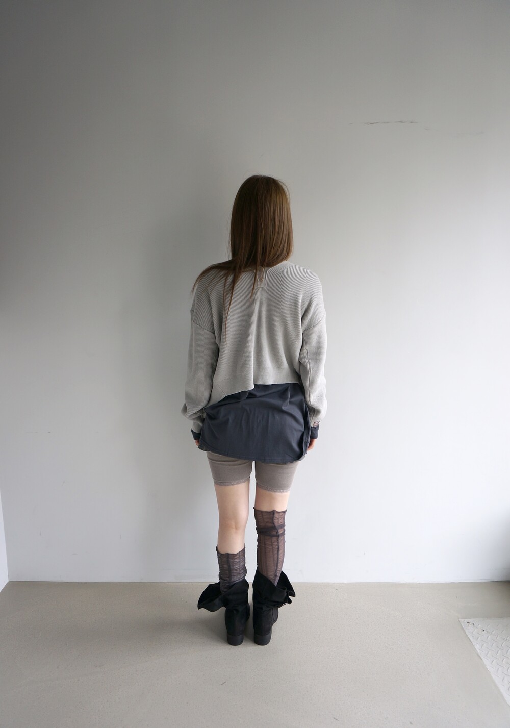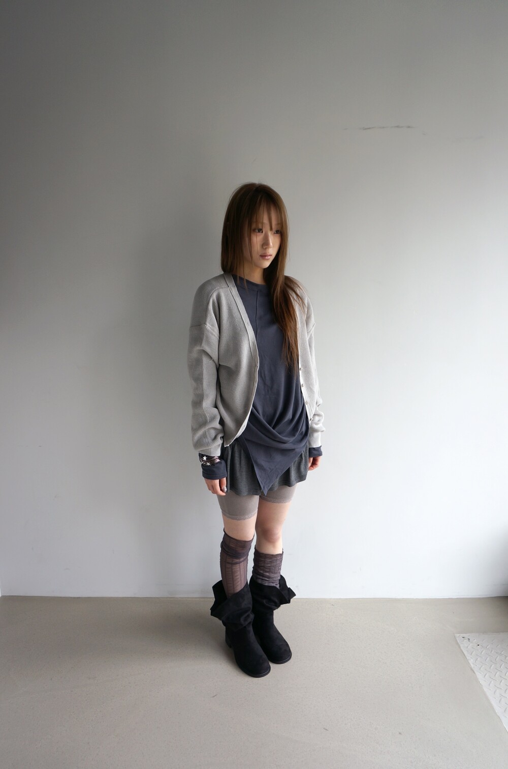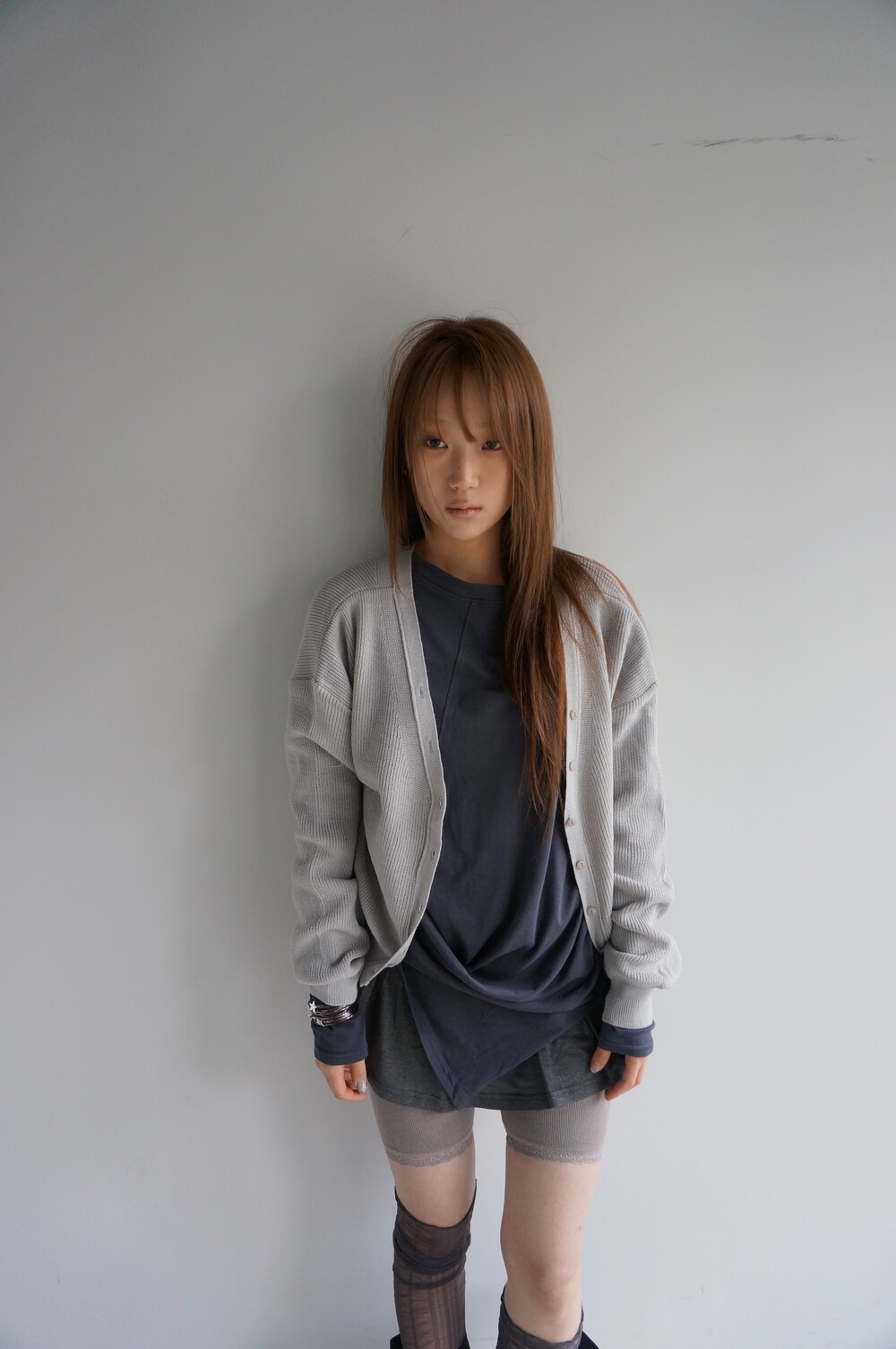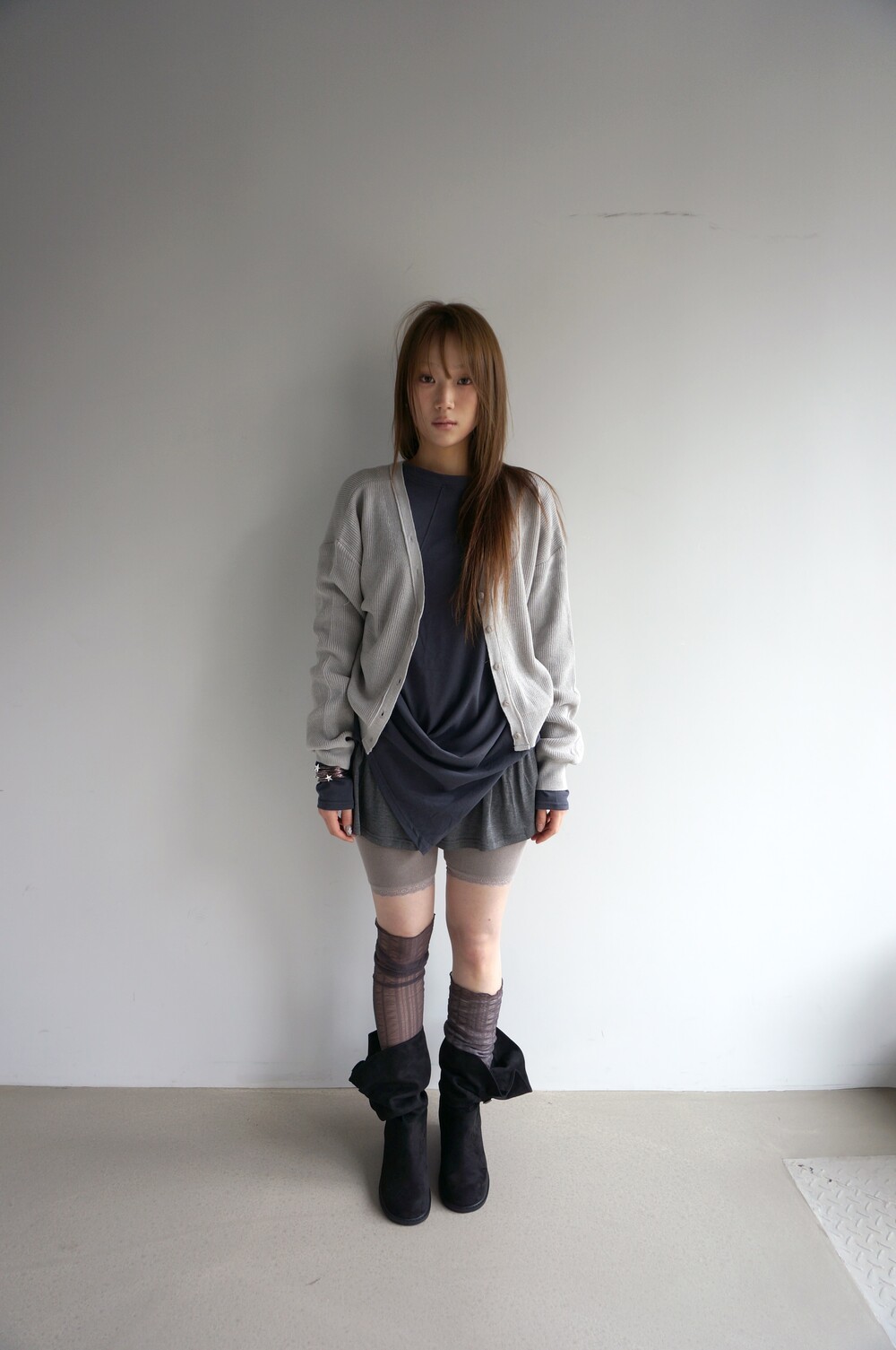 - 허벅지까지 내려오는 긴 기장의 슬리브.