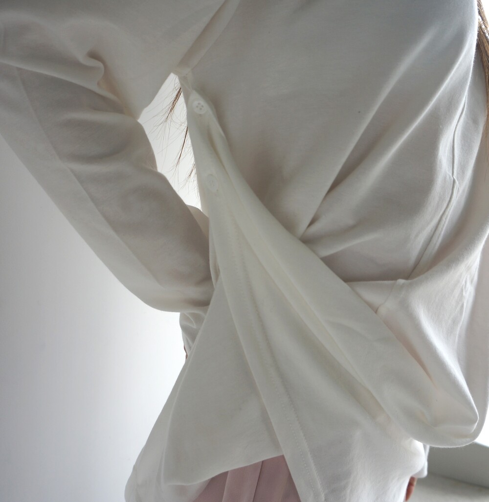 - 옆면 두개의 단추와 밑단 단춧구멍으로 다양한 실루엣 연출가능.