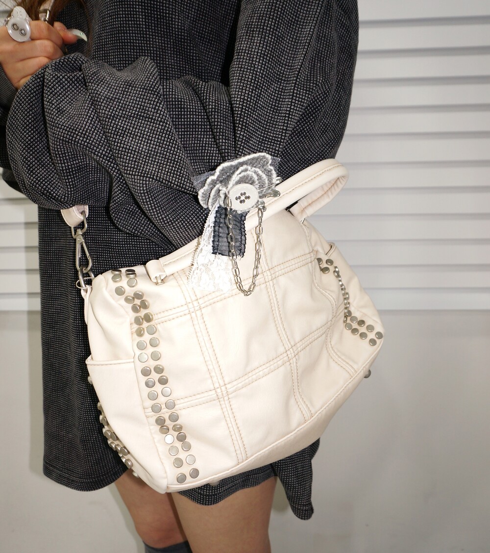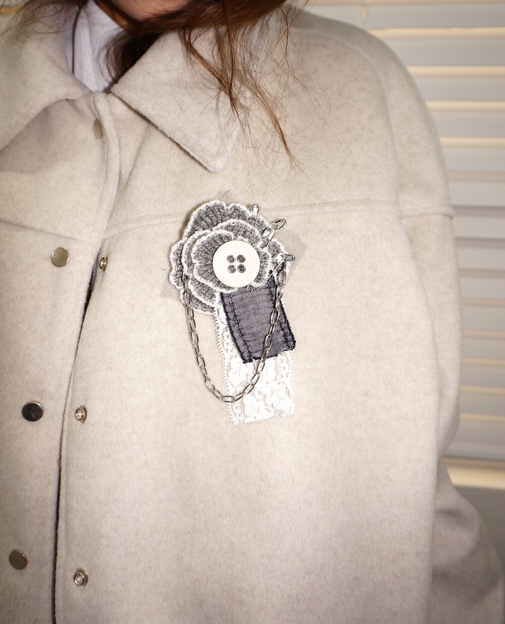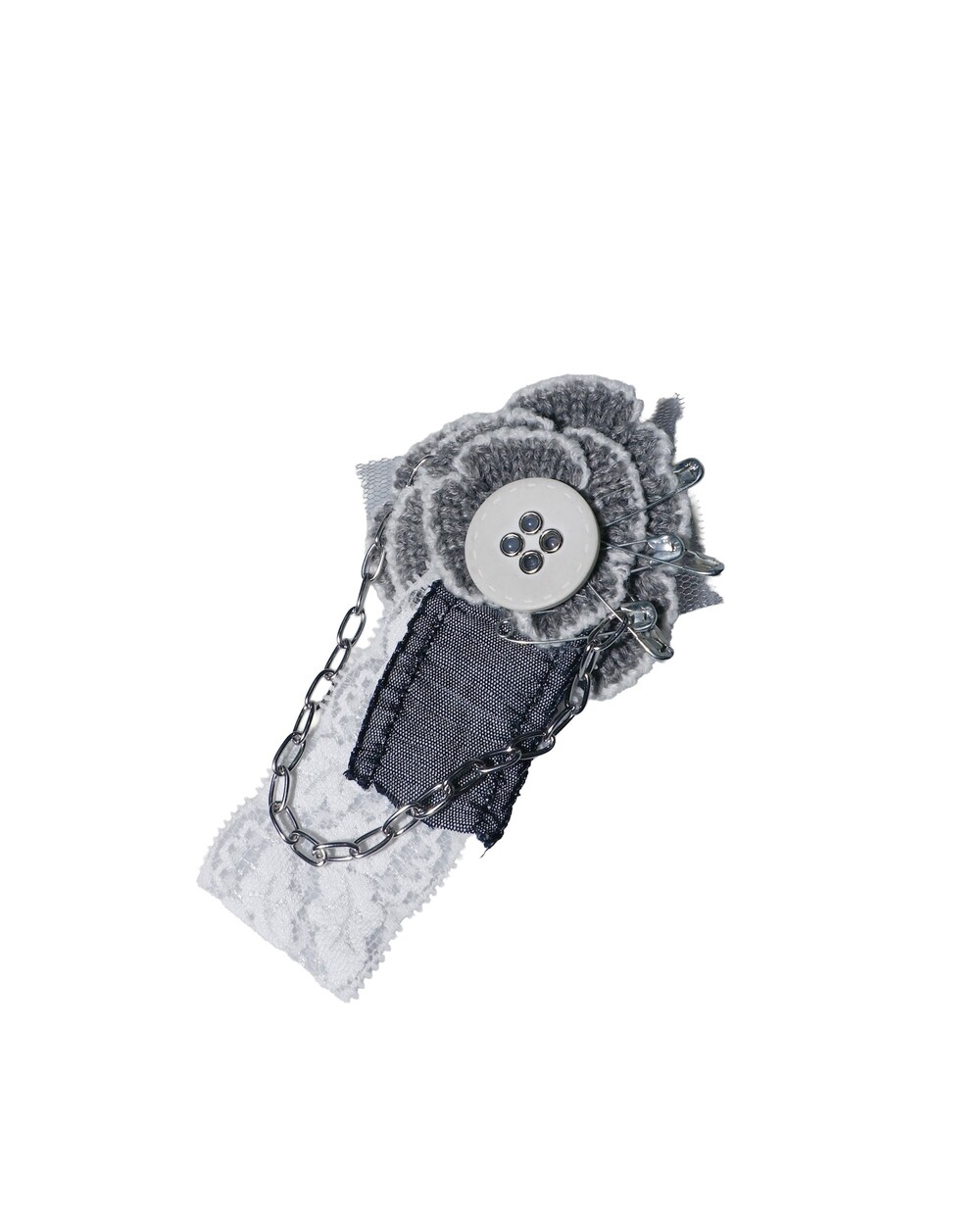 - 체인과 아일렛, 옷핀이 믹스되어 시크하면서 키치한 무드.