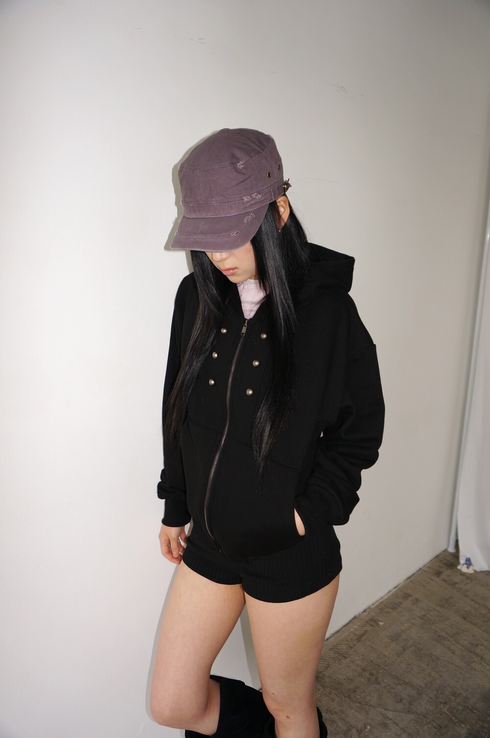 - 과감한 워싱 디테일의 캡.