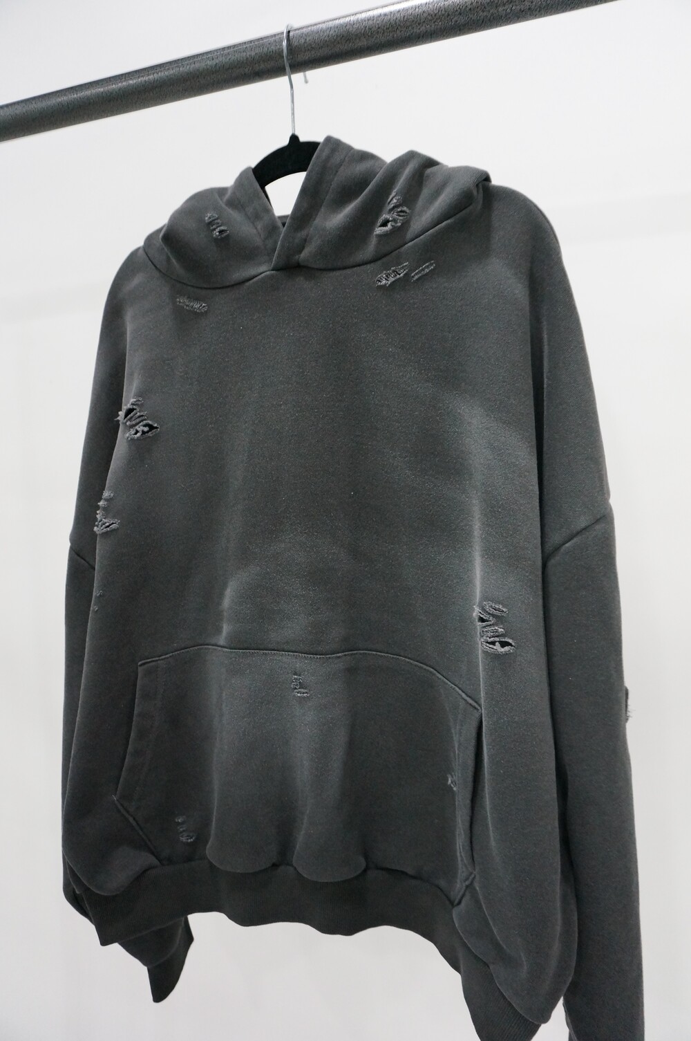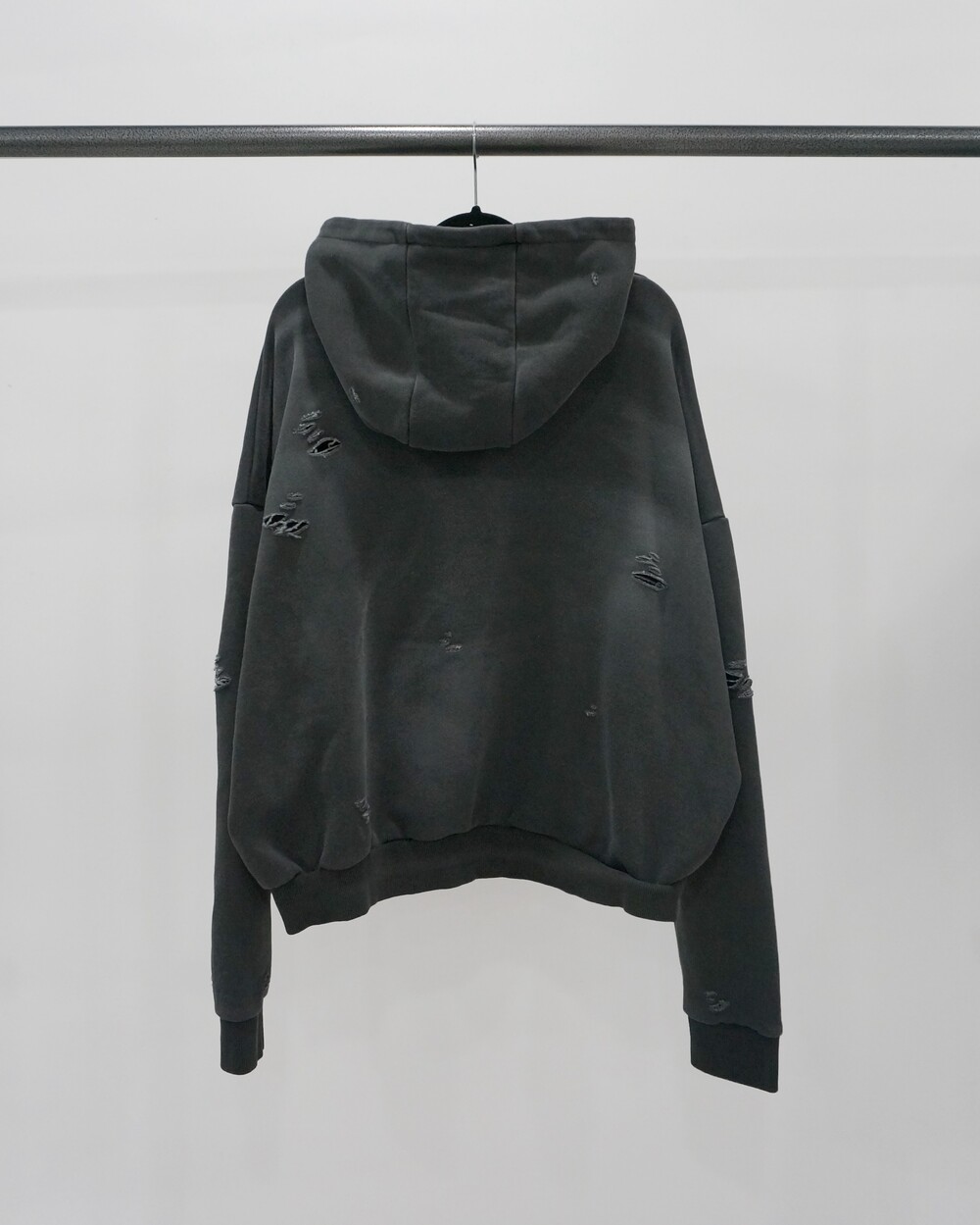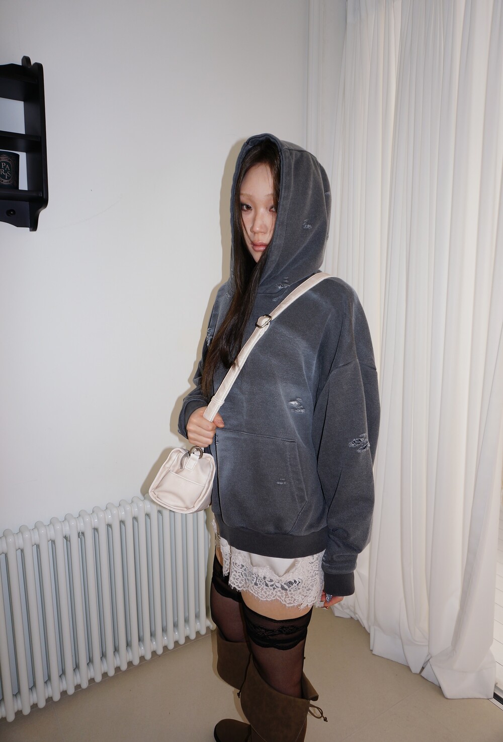 - 워싱된 듯한 스프레이 자국, 데미지처럼 찢어진 디테일.