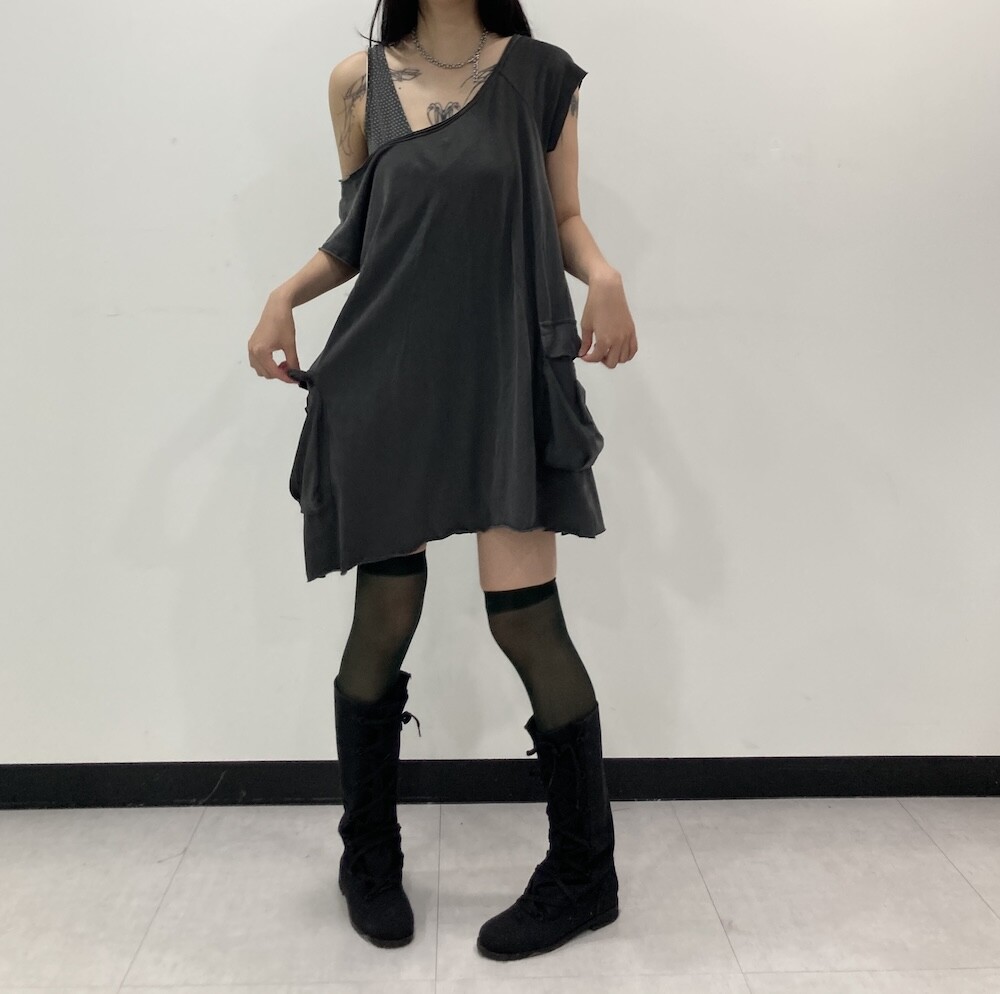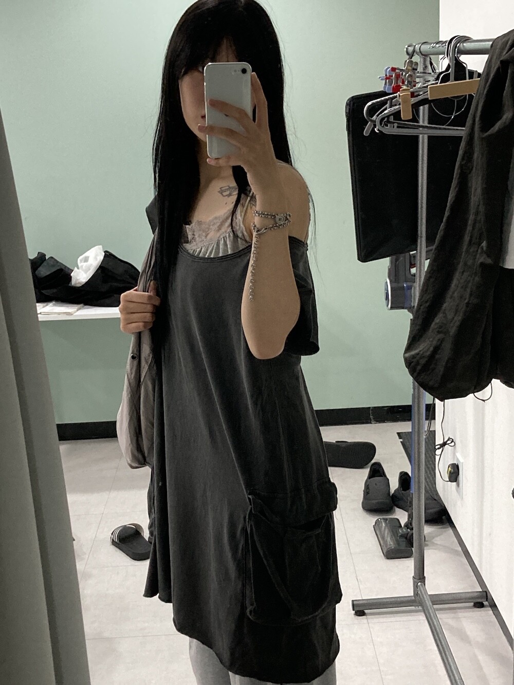 - 워싱기법으로 터프한 무드의 카고 원피스.