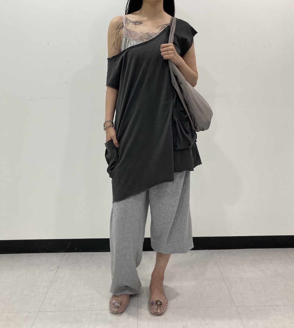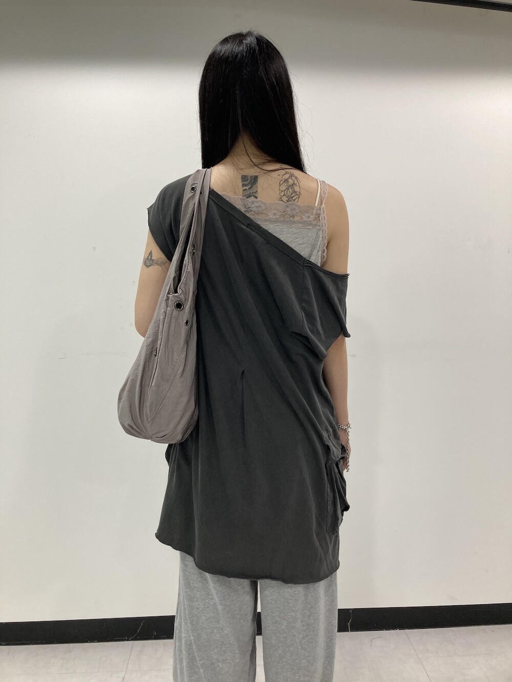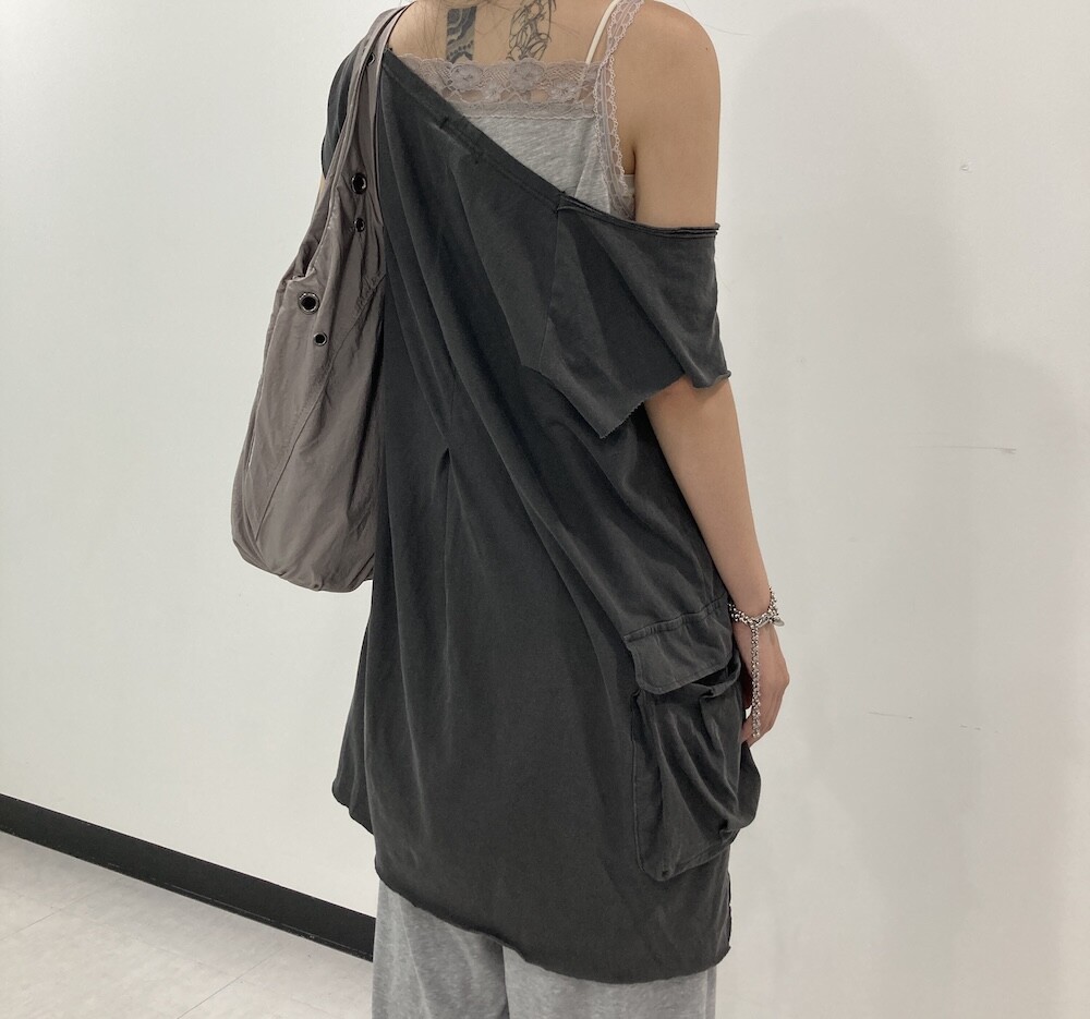 - 넓은 넥라인으로 이너 포인트를 주기 좋은 아이템.