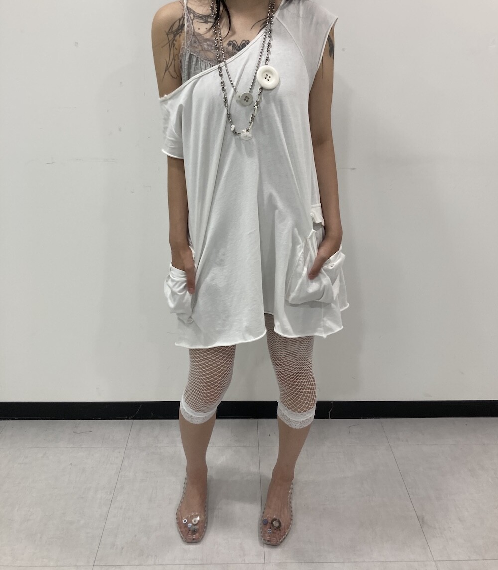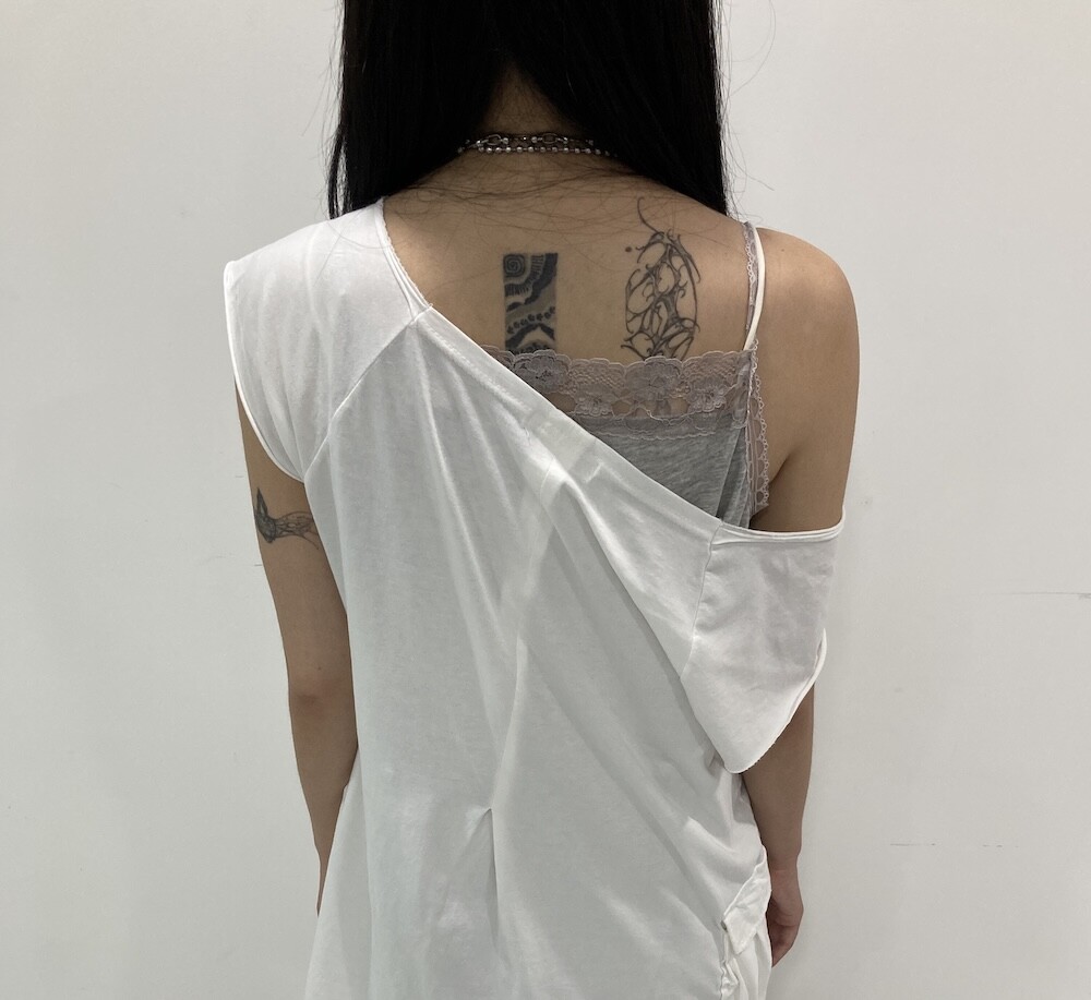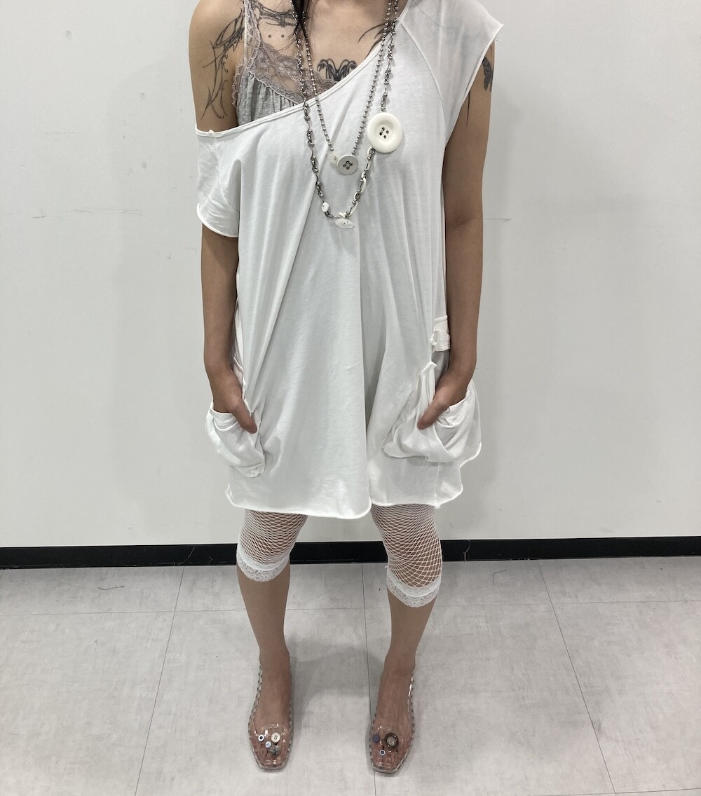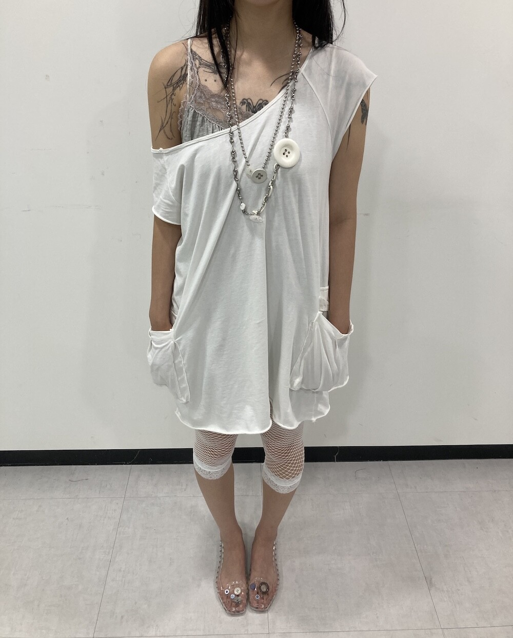 - 넓은 넥라인으로 이너 포인트를 주기 좋은 아이템.