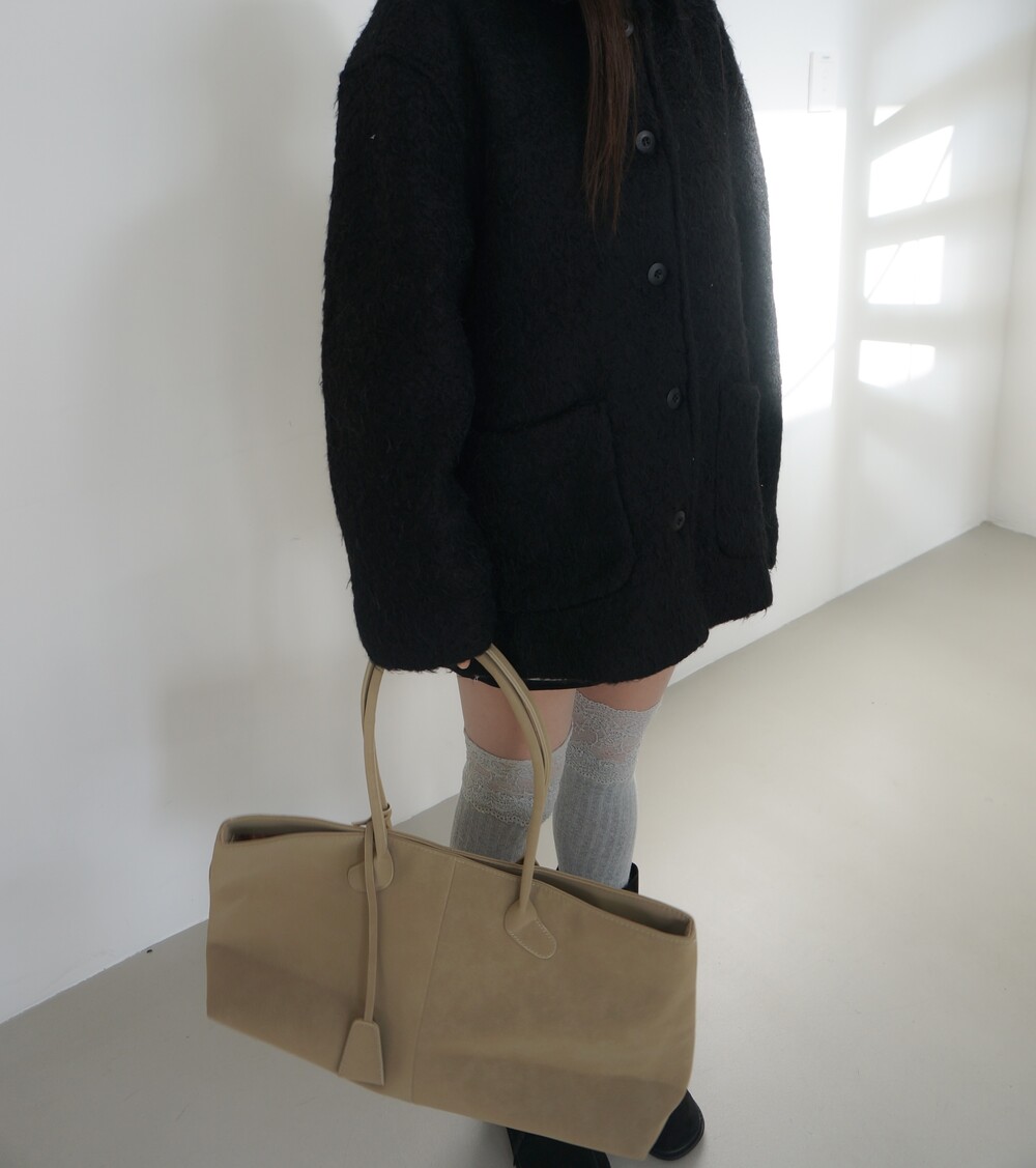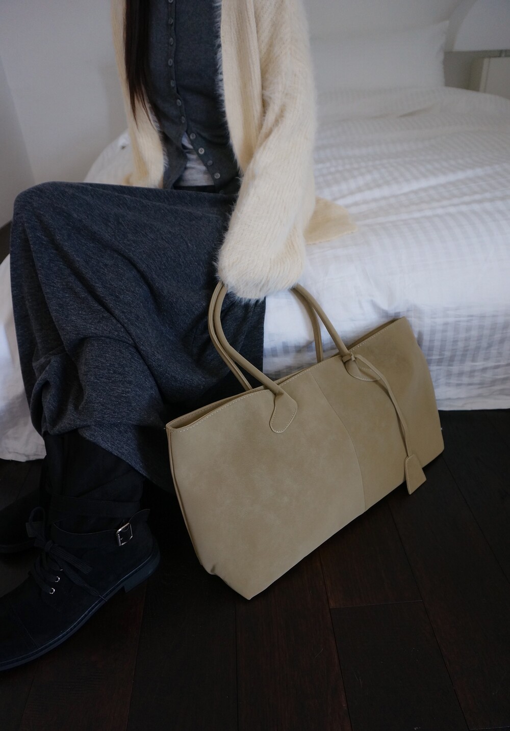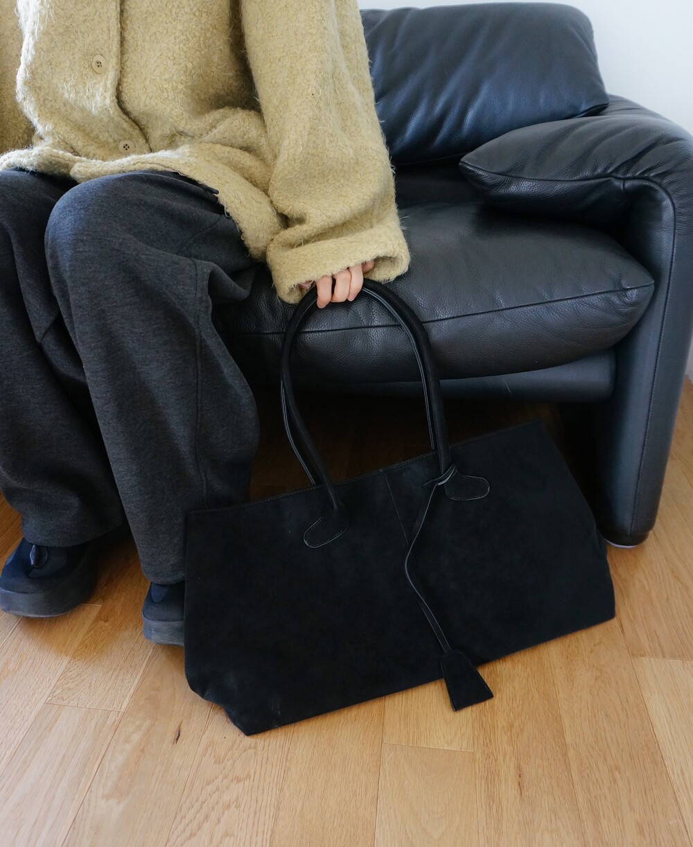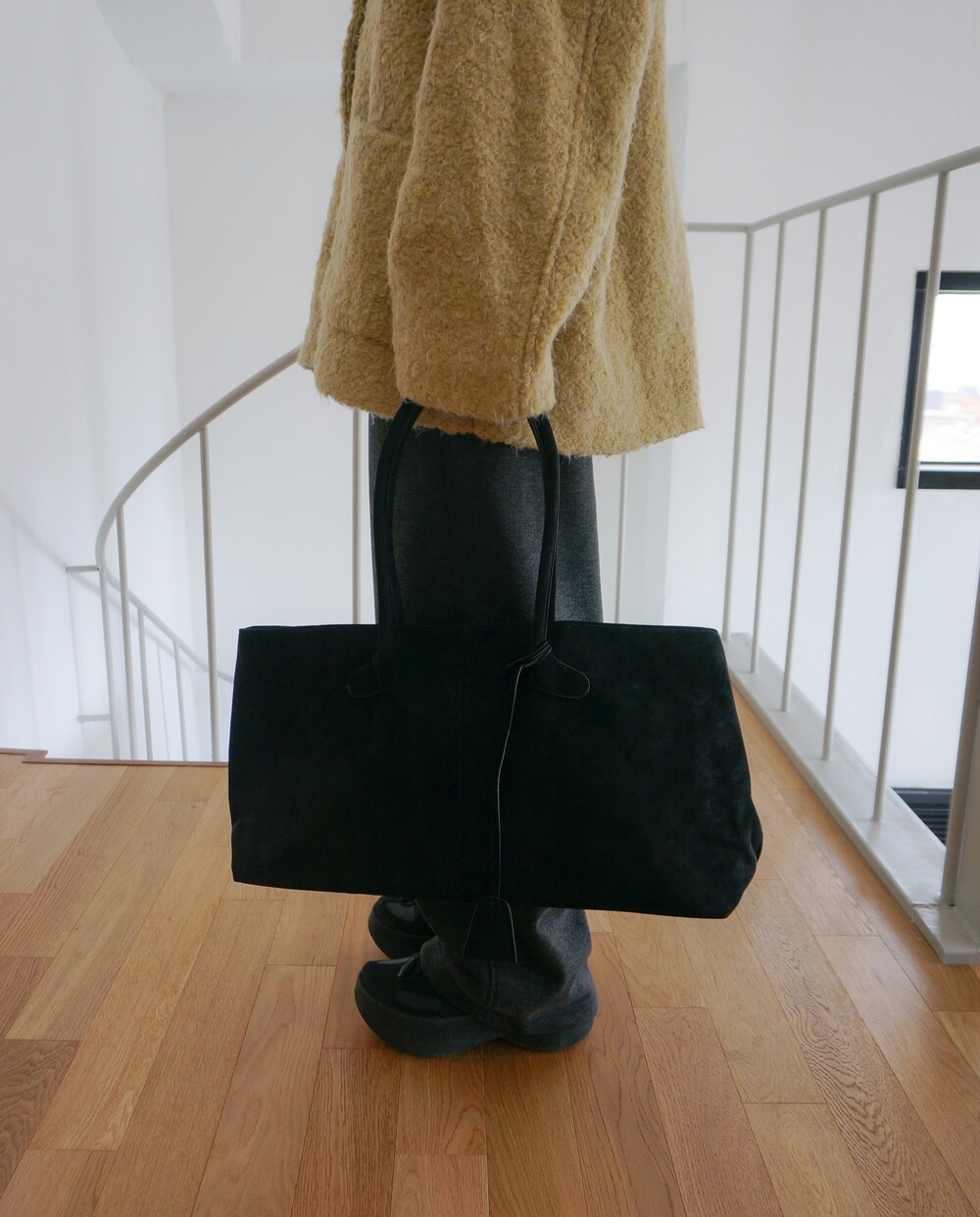 - 무광 코팅된 스웨이드 질감의 스퀘어백.