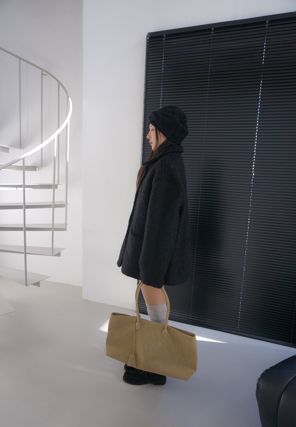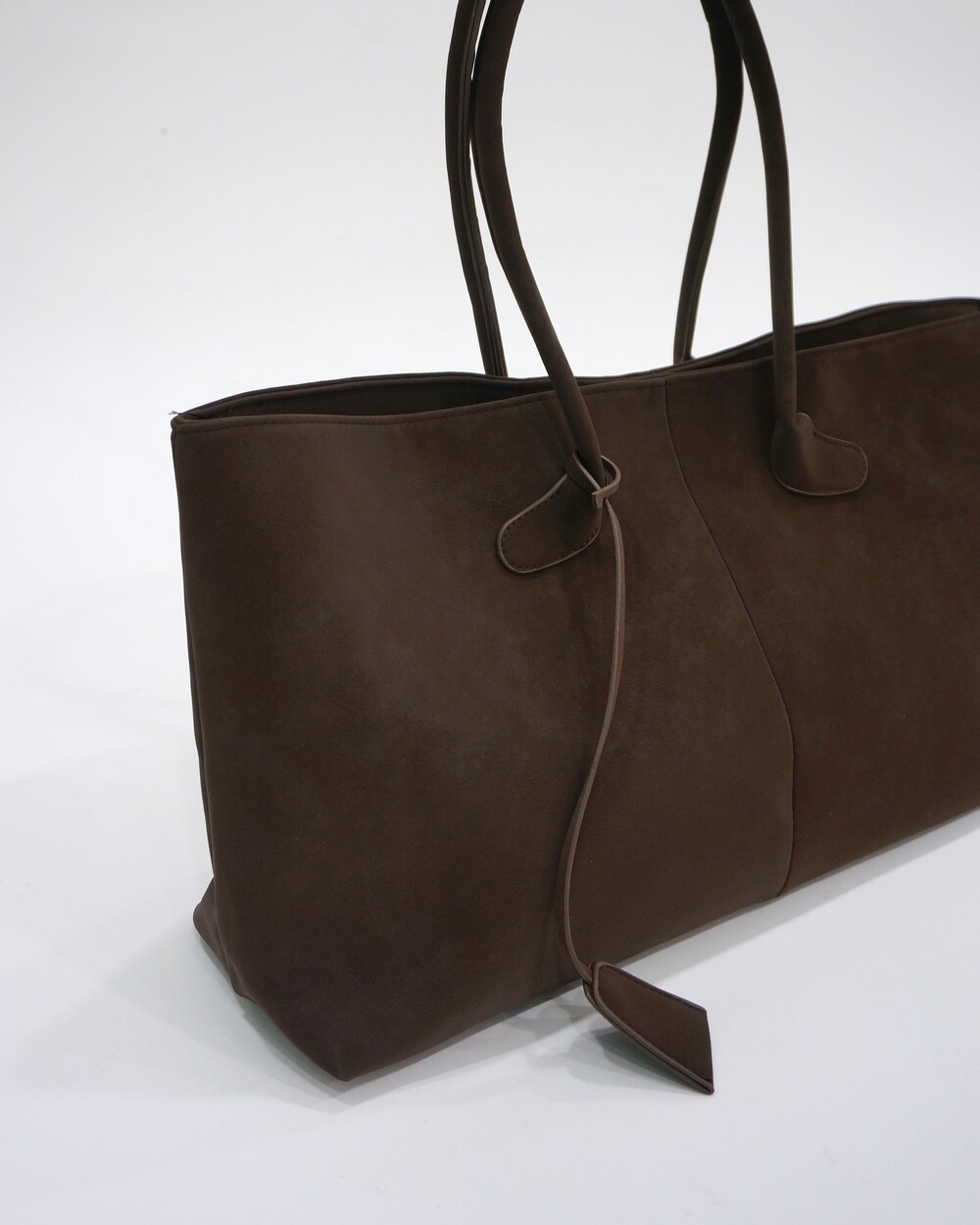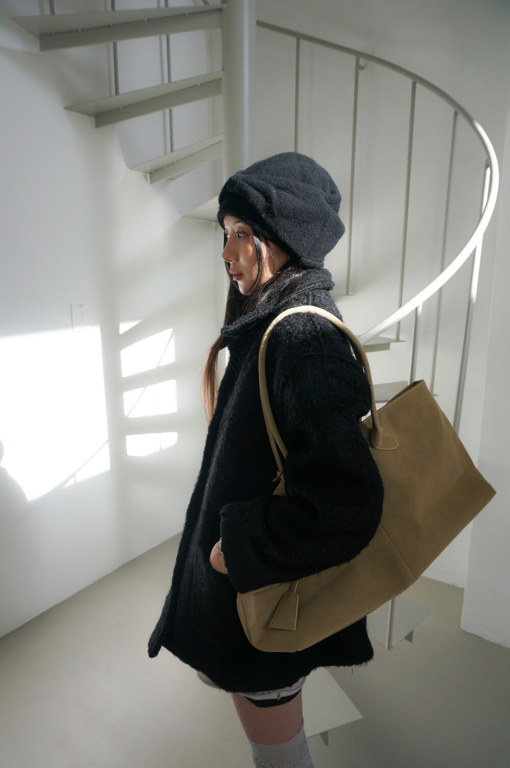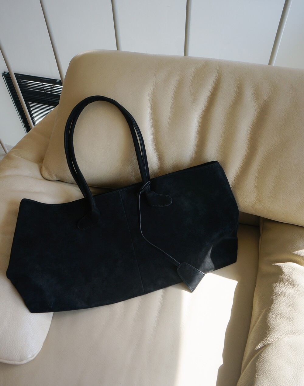 - 무광 코팅된 스웨이드 질감의 스퀘어백.